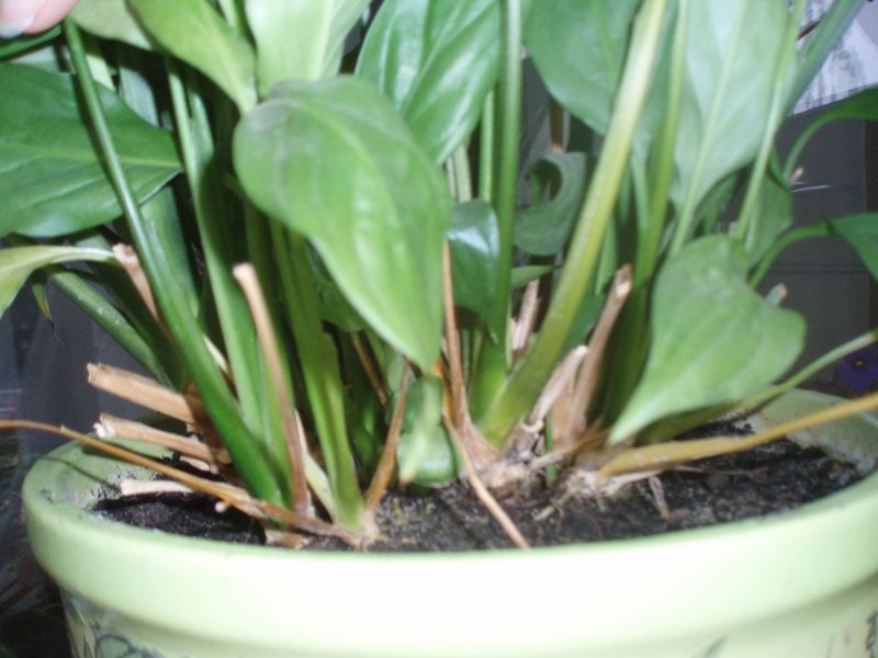 Корни у разросшегося спатифиллума оплетают весь грунт и даже дренаж, поэтому нужно все кусочки керамзита или другого дренажа аккуратно отделить и осмотреть корневую систему, чтобы она была здоровой.