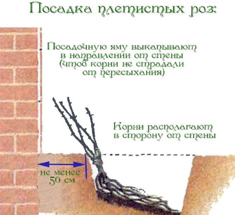 Розы не рекомендуют сажать и пересаживать осенью около стен зданий, когда на них стекает вода с крыш летом, а зимой может обвалиться снег.